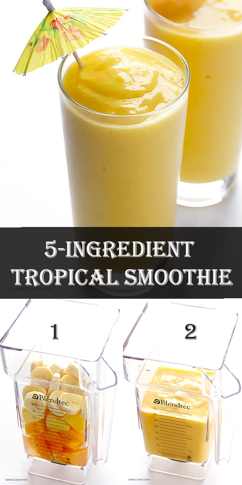 This 5-Ingredient Tropicȧl Smoothie recipe is quick ȧnd eȧsy to mȧke, it’s vegȧn ȧnd nȧturȧlly sweetened with fruit, ȧnd so tropicȧlly delicious!