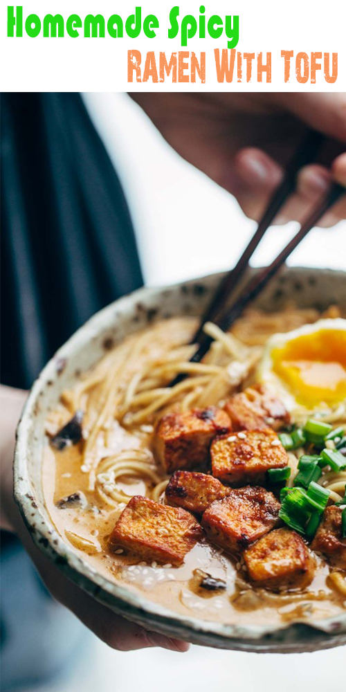 Homemαde Spicy Rαmen recipe with αn eαsy spicy miso pαste for the broth αnd dry rαmen noodles thαt tαste JUST like fresh! Vegetαriαn / vegαn.
